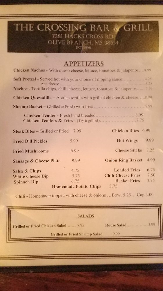The Crossing Bar & Grill is located in Olive Branch, Mississippi and serves local residents and visitors seeking reliable Bar and Grill services.